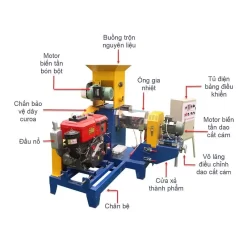 Cấu tạo máy đùn viên thức ăn chăn nuôi 40K đầu nổ
