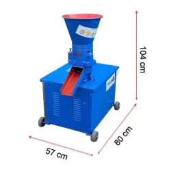 Máy ép cám viên trục đứng sử dụng điện gia đình 220V với thành máy dày dặn, toàn bộ khung máy được hàn gắn chắc chắn không gây rung lắc. Phía dưới chân máy lắp đặt 4 bánh xe thuận tiện di chuyển