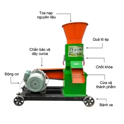• Tính năng: máy  chuyên dùng nghiền – ép hỗn hợp bột cám, ngô hạt, rau xanh.. tạo thành viên làm thức ăn cho gia súc – gia cầm