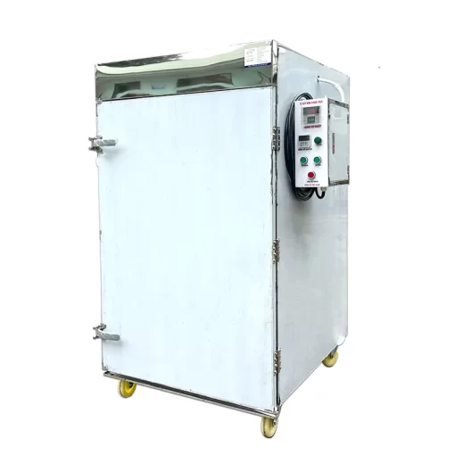 Cánh tủ dày, xung quanh viên trang bị gioăng cao su ôm khít tủ giúp giữ kĩn hơi nóng, ngăn thất thoát nhiệt góp phần giúp quá trình sấy diễn ra nhanh hơn – thành phẩm khô đều hơn