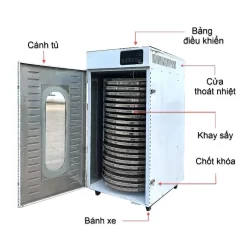 Thuộc dòng máy chế biến thực phẩm, máy được cải tiến với phần động cơ xoay 360 độ toàn bộ 20 khay lần lượt từ phải sang trái.